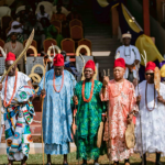 Azu Ofala which on the second day of the Ofala, is an elaborate display by the monarch’s   subjects usually made up of age grade societies in their very colourful uniforms.  Each society dances past the throne room paying homage to the monarch.  All these  leads to entertainment which give expression to a rich cultural heritage based on sacred values